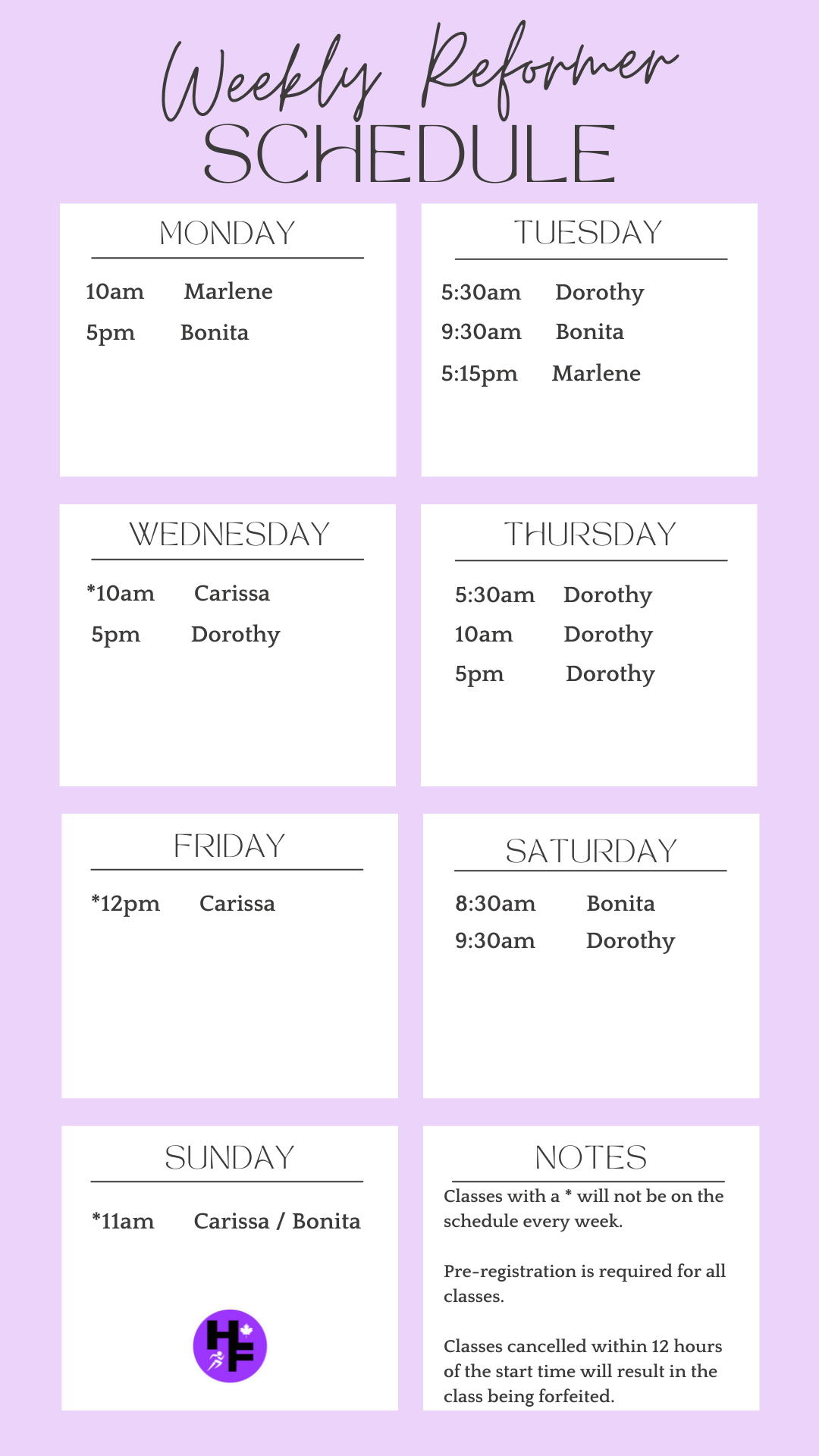 To ensure you have a spot, all classes must be booked in advance. Please note that cancellations made less than 12 hours before class will count as a used session, and any unused classes will not roll over into the next month.